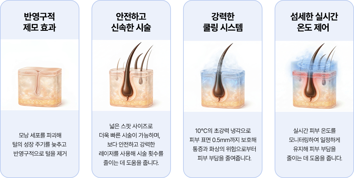 안전하고 효과적인 반영구 제모가 가능합니다.